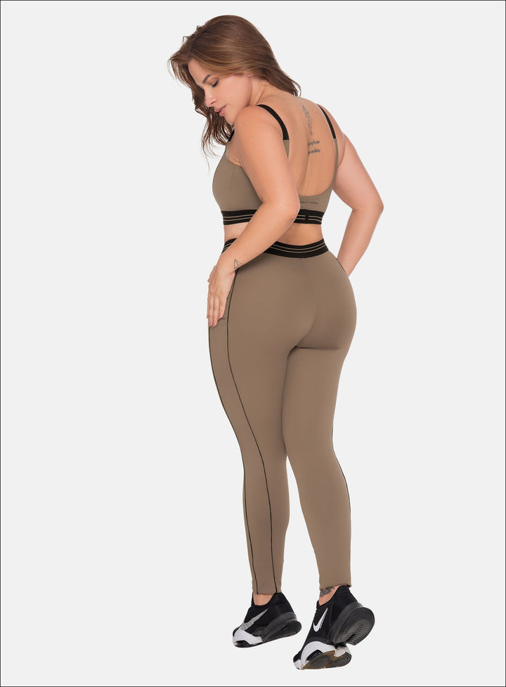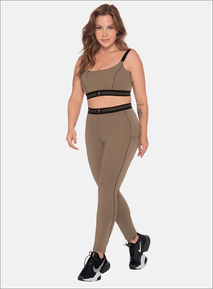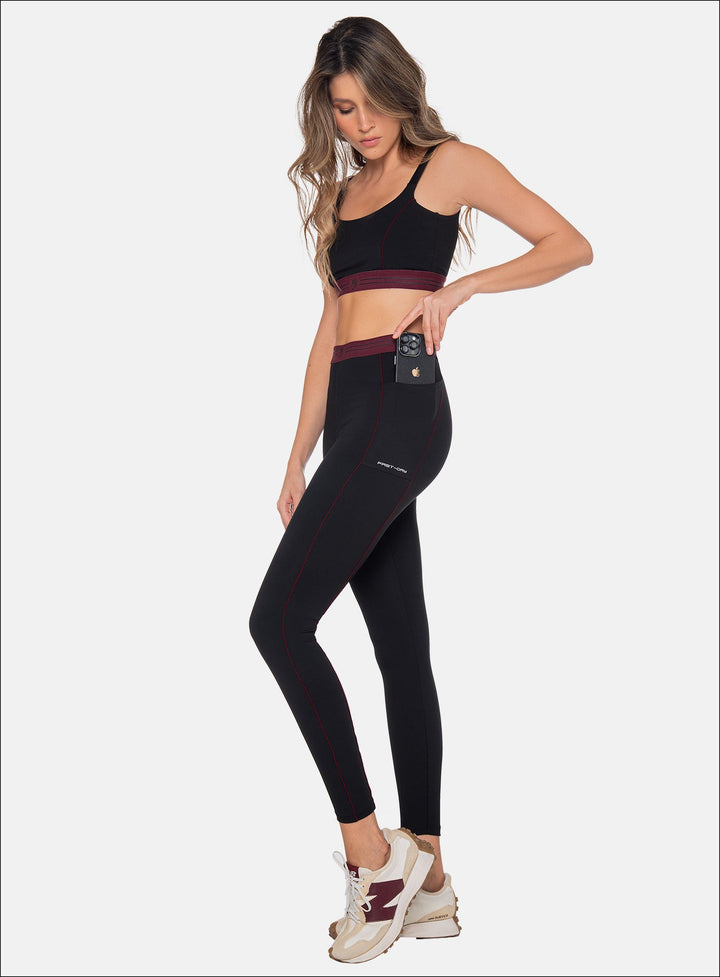 LEGGINS DEPORTIVO CON CORTES VERTICALES EN DELANTERO Y POSTERIOR ACOMPAÑADO CON SESGOS VIVOS, ELÁSTICO EXPUESTO ESTAMPADO EN CINTURA Y CON BOLSILLOS LATERALES