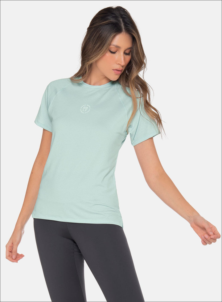 Raglan sleeve sports t-shirt with a low-cut back and small side slits.