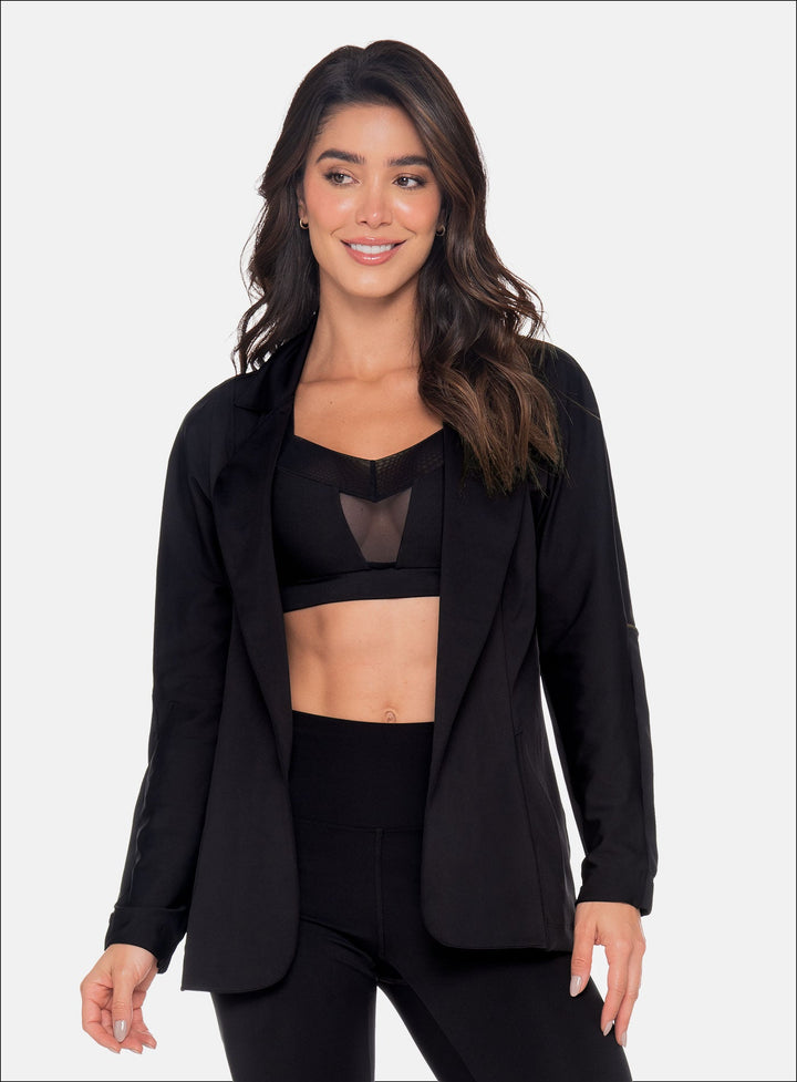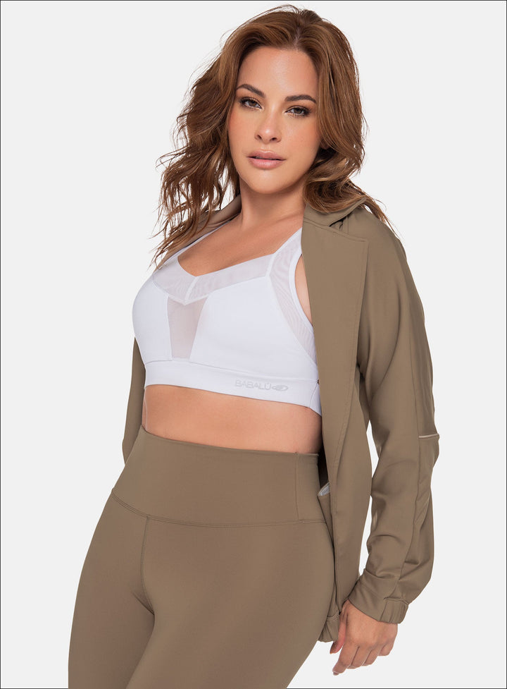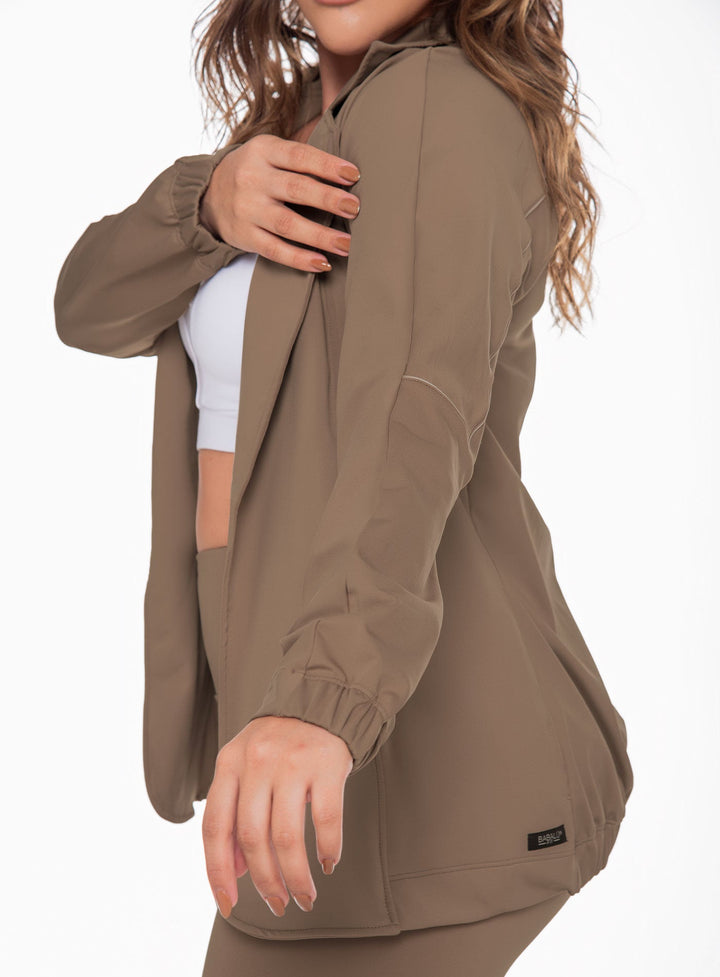 Sports jacket with a sporty collar, side pockets, and contrasting piping details.